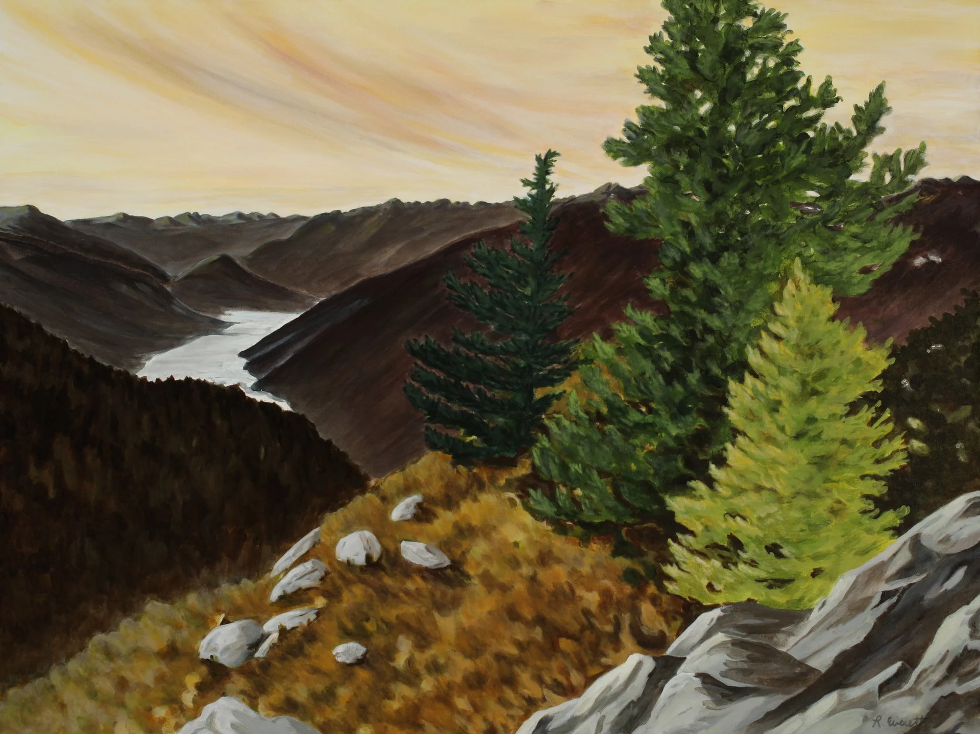 View from Uplake, 16" x 20", acrylic on masonite panel - sold