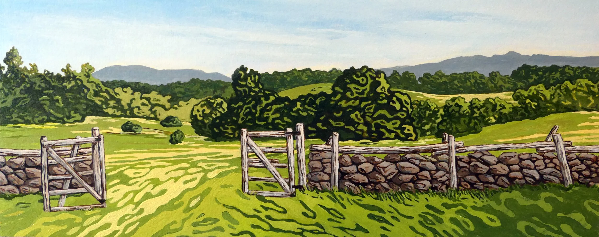 Fence at Oak Springs, 8" x 20", acrylic on paper - available