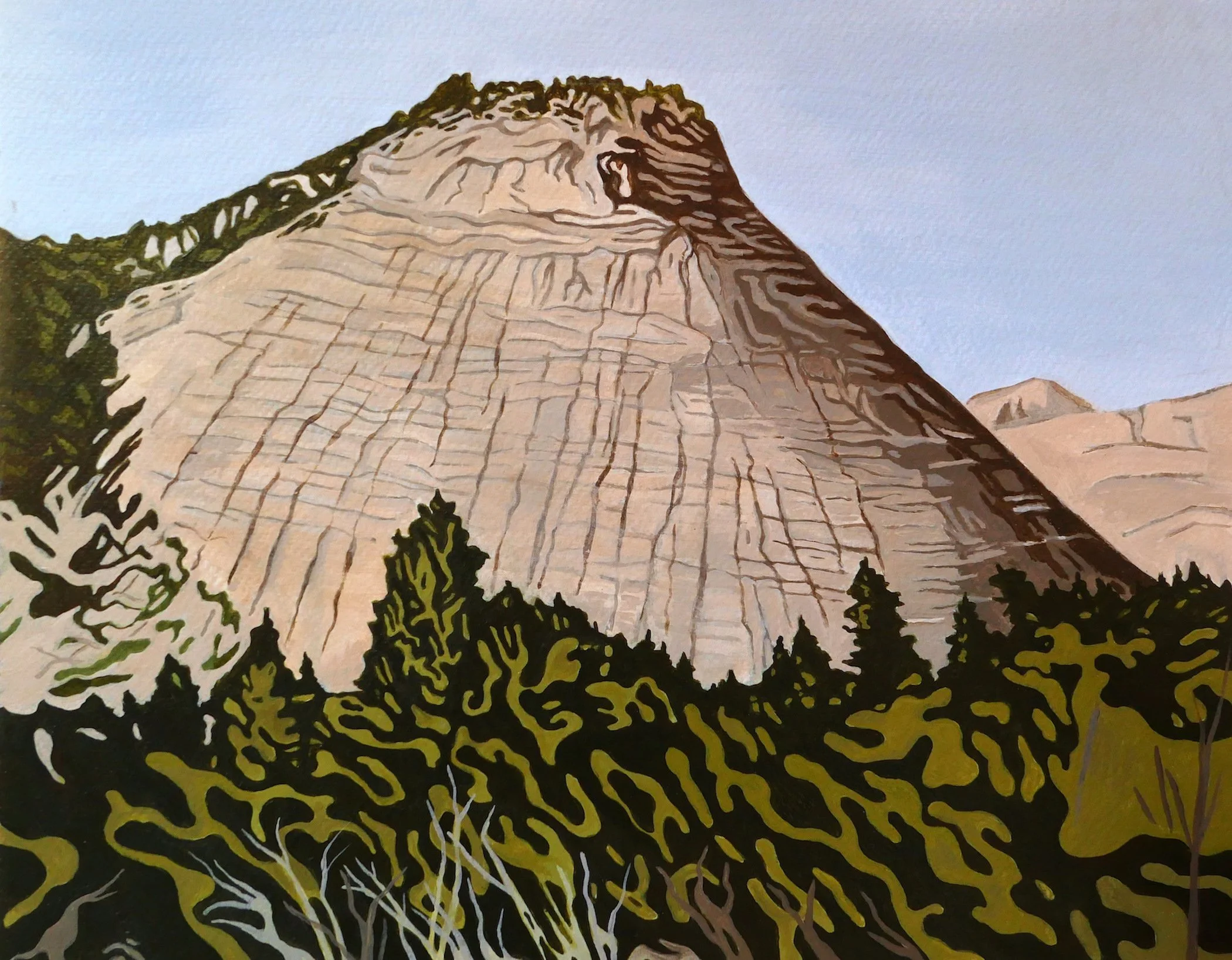 Zion National Park Juniper at Kolob Canyon, 19" x 14", acrylic on paper - available Checkerboard Mesa, 11" x 14", acrylic on paper - available Piñyon Pine in Rock, 16" x 12.5", acrylic on paper - sold Temple of Sinawava, 24" x 32" x 1.5", acrylic on canvas - Collection of Zion Nation Park (UT)